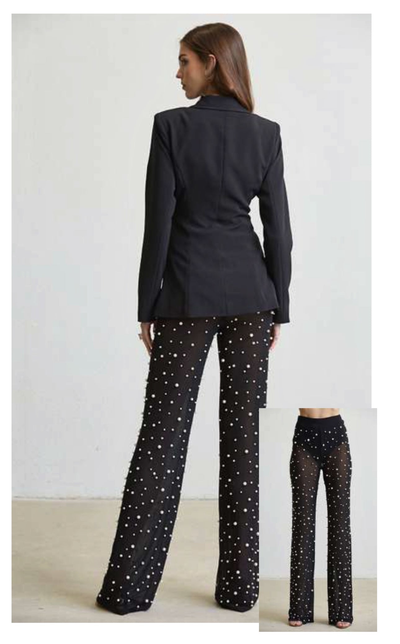 Experience luxury and sophistication with our PEARL PANTS SET! Elevate your wardrobe with our matching blazer for a timeless and elegant look that exudes confidence and style.